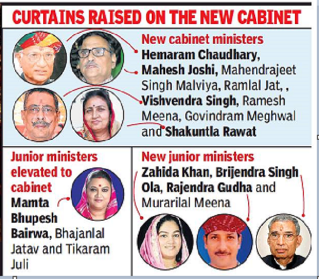 In the reconstituted government, the Pilot and Gehlot camps have five and seven members, respectively. Hemaram, Brijendra and Murarilal are the new faces from the Pilot camp. Zahida and Shakuntala, both known to be loyal to Gehlot, are among three women in the ministry along with Mamta.