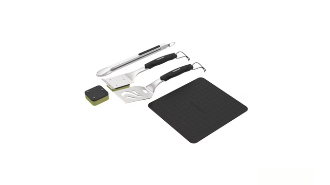 Save over $13 on this five-piece Cuisinart grill tool set that has everything you need for your next tailgate. Included are a perforated spatula and a pair of locking tongs made from stainless steel and a large silicone mat for resting tools and keeping messes contained. When it’s clean-up time, the patented Grill Renew steam cleaner brush will make quick work of a dirty grill — no wire bristles needed. The set also comes with an extra Grill Renew cleaner brush head.