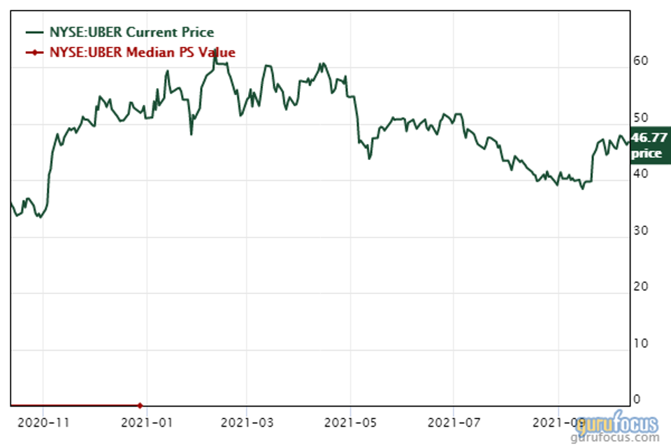 The San Francisco-based ridesharing company, which also offers food and package delivery services, has an $87.7 billion market cap; its shares were trading around $46.66 on Tuesday with a price-book ratio of 6.17 and a price-sales ratio of 7.06.