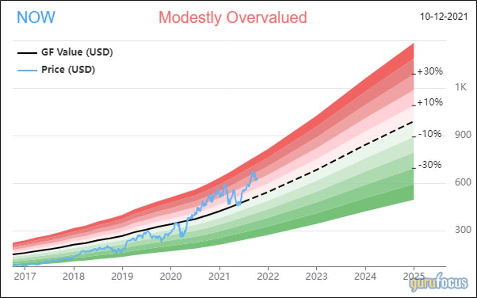 The Santa Clara, California-based software company, which operates a cloud computing platform to help customers manage digital workflows and enterprise operations, has a $124.19 billion market cap; its shares were trading around $629.51 on Tuesday with a price-earnings ratio of 746.33, a price-book ratio of 37.92 and a price-sales ratio of 24.49.