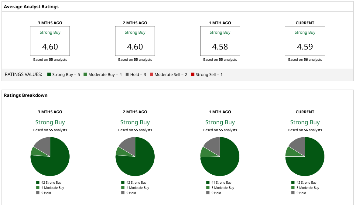 Overall, on Wall Street, GOOGL stock is a “Strong Buy.” Of the 56 analysts covering the stock, 42 rate it a “Strong Buy,” five say it is a “Moderate Buy,” and nine rate it a “Hold.” GOOGL stock is trading close to its average target price of $249. However, its high price estimate of $300 suggests the stock has upside potential of 25% over the next 12 months.