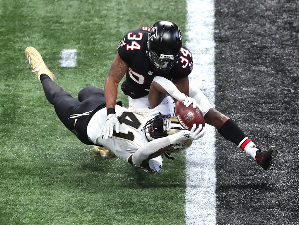 The Falcons' offense, playing with Jones and running back Todd Gurley, was stymied by the Saints until the fourth quarter. They cobbled together three field goals and got a touchdown in the final quarter to stay in the game.