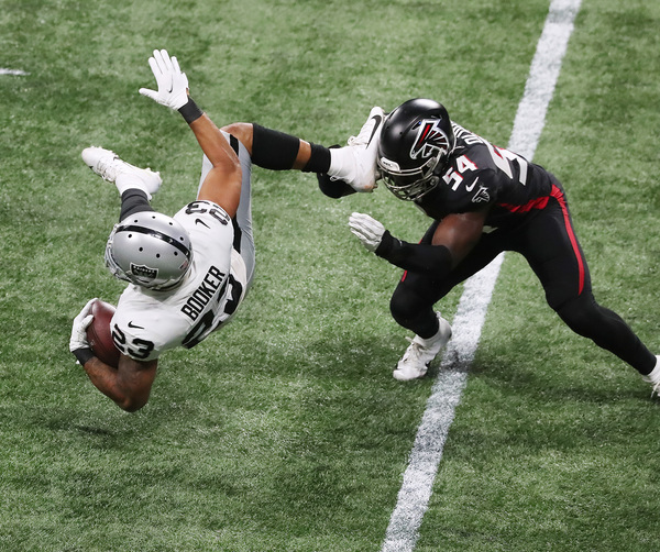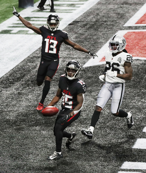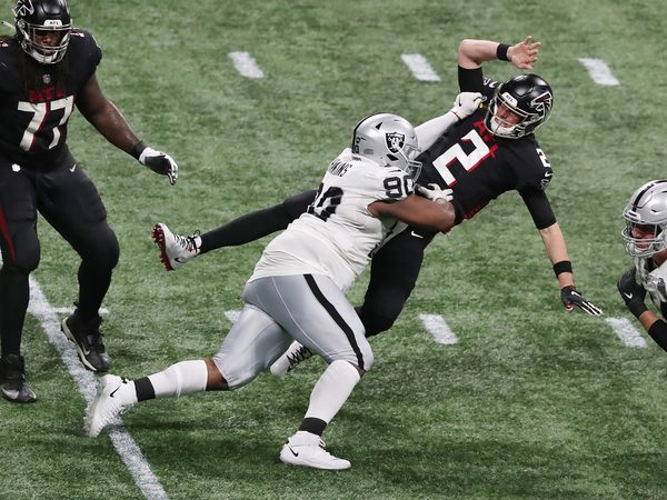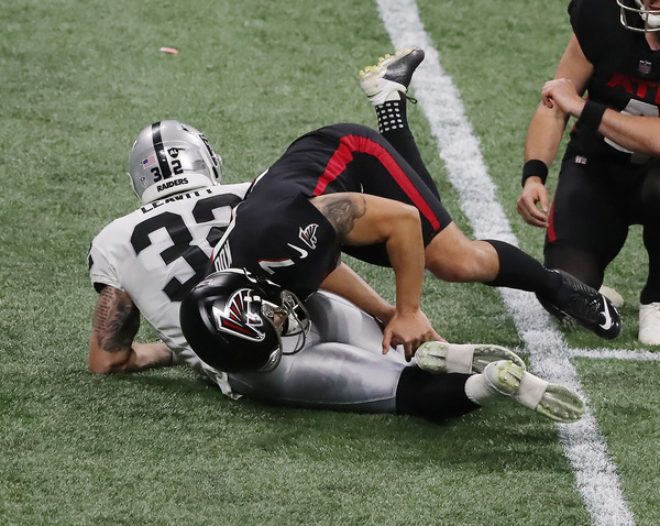 Without two key cogs on offense, the Falcons' defense created five turnovers that led to 23 points. The Falcons were coming of a horrible loss to the Saints, while the Raiders went toe-to-toe with the defending Super Bowl champion Kansas City Chiefs last week.