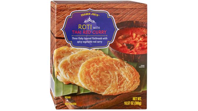 Each box comes with three flaky flatbreads and a packet of coconut milk-based red curry with green eggplant, cabbage and potatoes. The curry paste contains traditional Thai seasonings like lemongrass, bird’s eye chiles and galangal, giving it authentic spicy flavor.