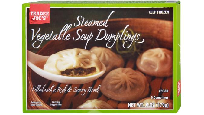 These dumplings are filled with jackfruit, carrot, cabbage, spinach and ginger, plus a hearty broth made with agar-agar instead of gelatin to keep them vegan. They’re inspired by Chinese xiao long bao and heat up in minutes in the microwave or steamer.