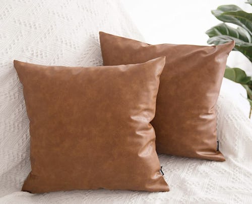 HOMFINER Faux Leather Throw Pillow Covers (2-Pack)