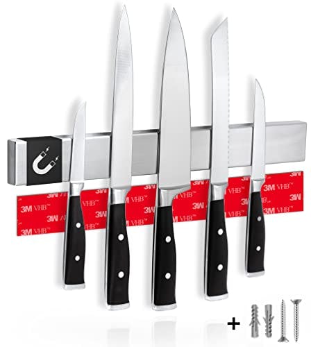 Cucino Magnetic Knife Strip Adhesive - No Drilling 16 Inch Stainless Steel Magnetic Knife Holder for Wall