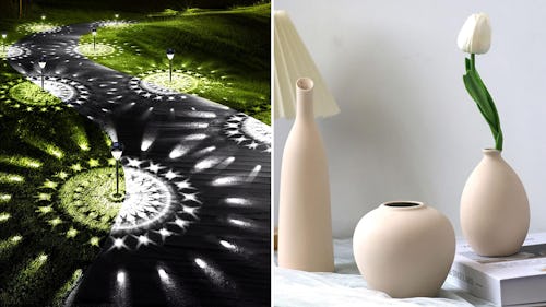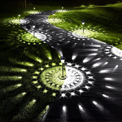 These weatherproof solar garden lights have a timeless lantern shape that will look chic in your yard, but they also have such a dreamy light design. The bright LED lights are paired with an intricate patterned cover, so they’ll illuminate your outdoor space with seriously fun patterns. These stylized lights will also automatically turn on at night to make your backyard lighting completely effort-free.