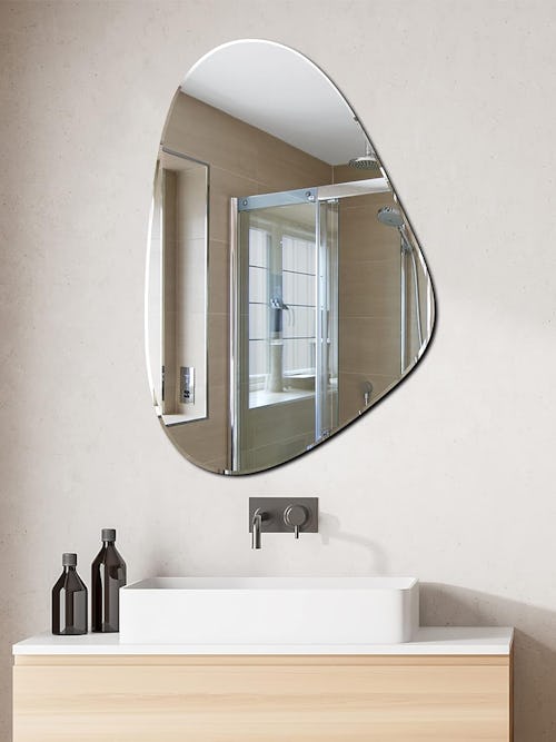 This budget-friendly mirror is such a unique way to add a large hanging mirror to your space without it looking too bulky. The stylized design has an irregular shape that adds a modern, intriguing accent to any room, whether you want to hang it over your bathroom sink, in your bedroom, or by the entryway. No matter where you want to hang it, the four hangers on the back make installation a breeze.
