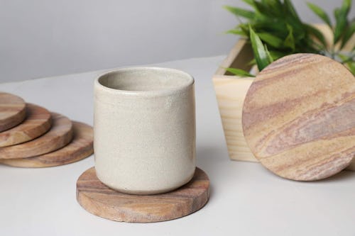 These yellow sandstone coasters have a natural, neutal look to make your coffee table look a little more curated and elevated. Each one comes with grippy, padded bottoms that will prevent watermarks and scratches on your table (of course), all while adding some super aesthetic style.