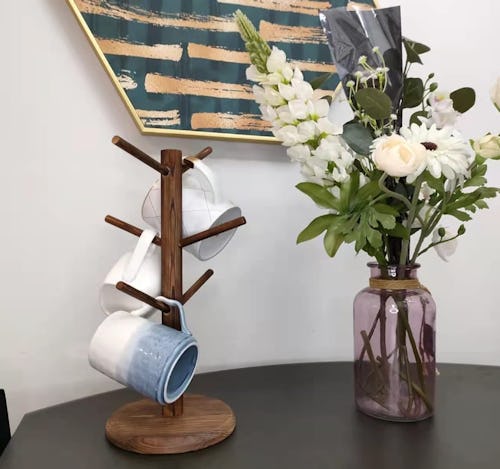 This mug holder will add a classic and inviting touch to your countertop, and it’s large enough to hold onto six of your go-to mugs, which will free up precious cabinet space. The wooden design makes it sturdy enough for oversize or extra-heavy mugs. It also comes with four nonslip accents underneath to keep it perfectly in place every time you reach for a mug.