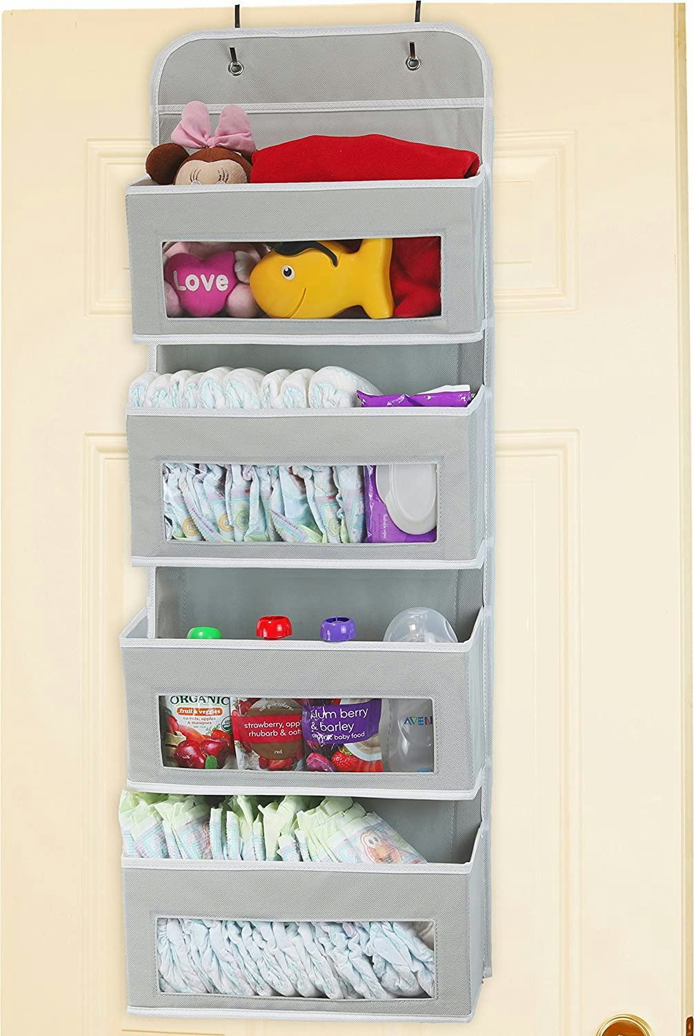 Hang this pocket organizer over any door and stash small items like underwear, baby supplies, medicines, spices, or personal care products into the four pockets. It gets small items off your shelves and makes them more accessible. The clear windows let you see what’s in each pocket. They come in eight colors and get 21,000 five-star reviews.