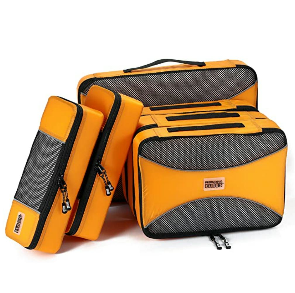 With this suitcase organization system, you won’t arrive home with a jumbled mess of clothes crammed into your bag anymore. These zip-up nylon bags are finally a solution for keeping your suitcase organized, and they even reduce bulk in your bag by 30%. Plus, the mesh accents let you see what’s stored in each cube without opening them.