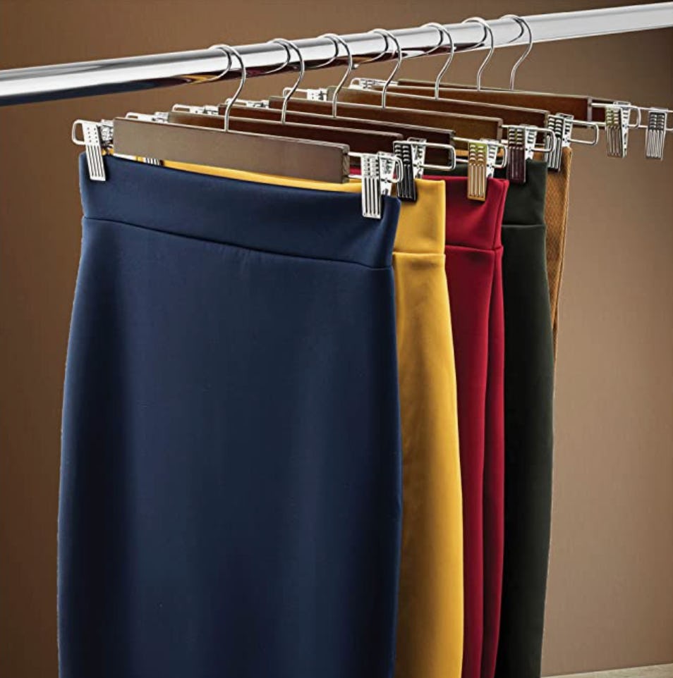 13. These wooden hangers that won’t wrinkle your pants & skirts