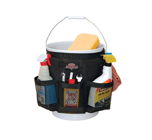 Don't leave all your supplies littered across the ground when it's time to wash your car — slip them into the pockets on this bucket organizer. It's designed to fit most 5-gallon buckets, while the mesh pockets help wet scrubbers dry quickly to prevent mildew.