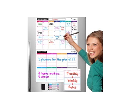 Having trouble keeping track of all your plans? Put this dry-erase calendar on your fridge. The magnetic backing makes it easy to hang, and each order also comes with four markers as well as one eraser. "Super easy to set up," wrote one reviewer. "Just threw it on the fridge and immediately started organizing."