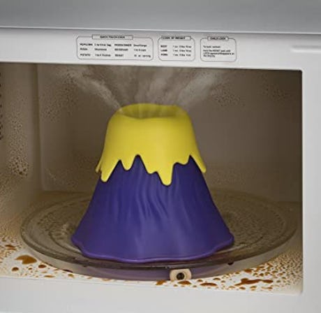 Fill this volcano with a blend of water and vinegar, then pop it into your microwave for about five minutes. Steam will erupt out of the top, helping to loosen up any baked-on food stuck to your microwave walls. Plus, the double-walled base helps the outside stay cool.