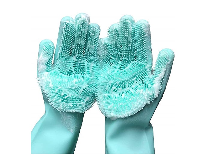 There's no need to rely on grimy sponges to clean your dishes when you're wearing these gloves. The palms feature silicone bristles that help you scrub away dirt and grime, while the silicone itself is heat-resistant up to 320 degrees Fahrenheit — perfect for washing with hot water.