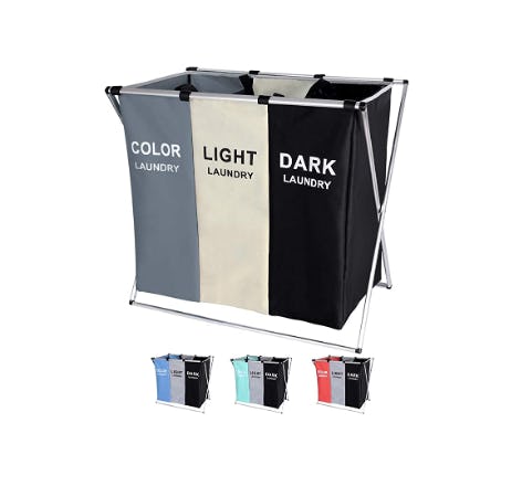 Not only does this partitioned hamper help you separate your lights, darks, and colors, but the bins are also made from tough Oxford fabric. It features straps at the top that allow you to remove the bins when it's time to wash your clothes, and it's made from sturdy aluminum — not plastic.