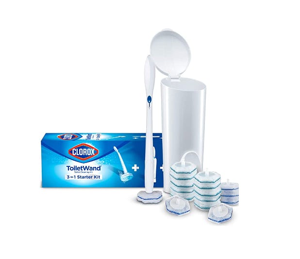 Tired of seeing that dirty toilet scrubber every time you use the bathroom? Switch over to this disposable version from Clorox. Each order comes with 10 scrubber heads — and each one is pre-loaded with Clorox cleanser that helps eliminate up to 99.9% of viruses and bacteria.