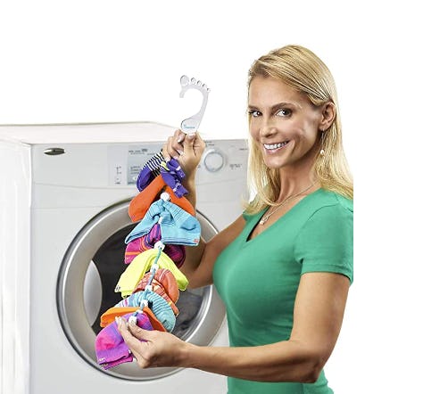 Tired of winding up with mismatched socks? Keep them pinned on this rack while they're going through the wash. The clips won't let go as they tumble in the washer or the dryer — and you can also use it with masks, headbands, gloves, or even bras.