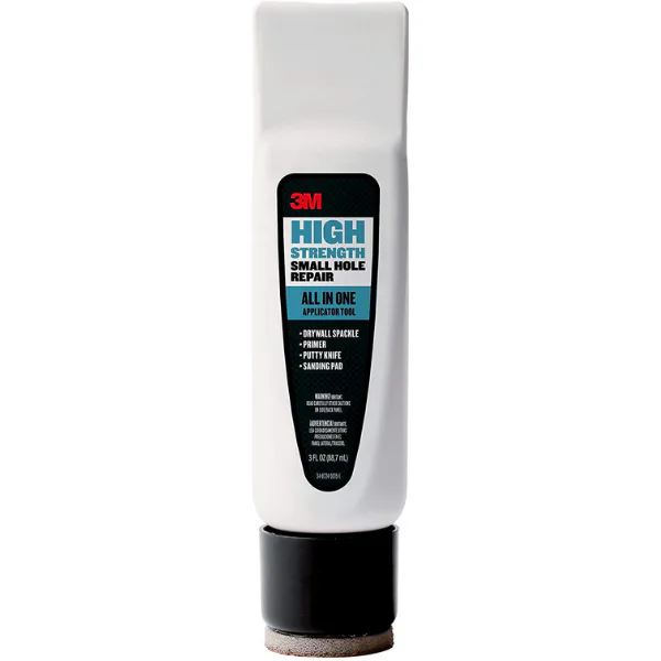The brilliant packaging on this primer-enhanced spackle makes fixing wall holes something you can easily do with this alone. Squeeze some spackle onto the wall, use the putty-knife-shaped butt end of the bottle to smooth it down, and sand it with the pad on the cap.