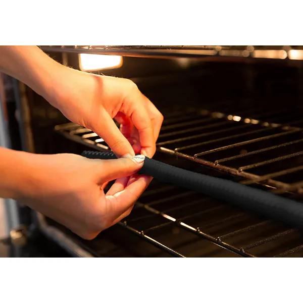 If you tend to burn yourself getting cookies and other just-baked treats out of the oven, these silicone protectors will prevent that. They wrap around the edge of the oven rack and don’t get burning hot, so if do come in contact with the rack, you will be warned but not scorched. Just cut them to size and snap them on.