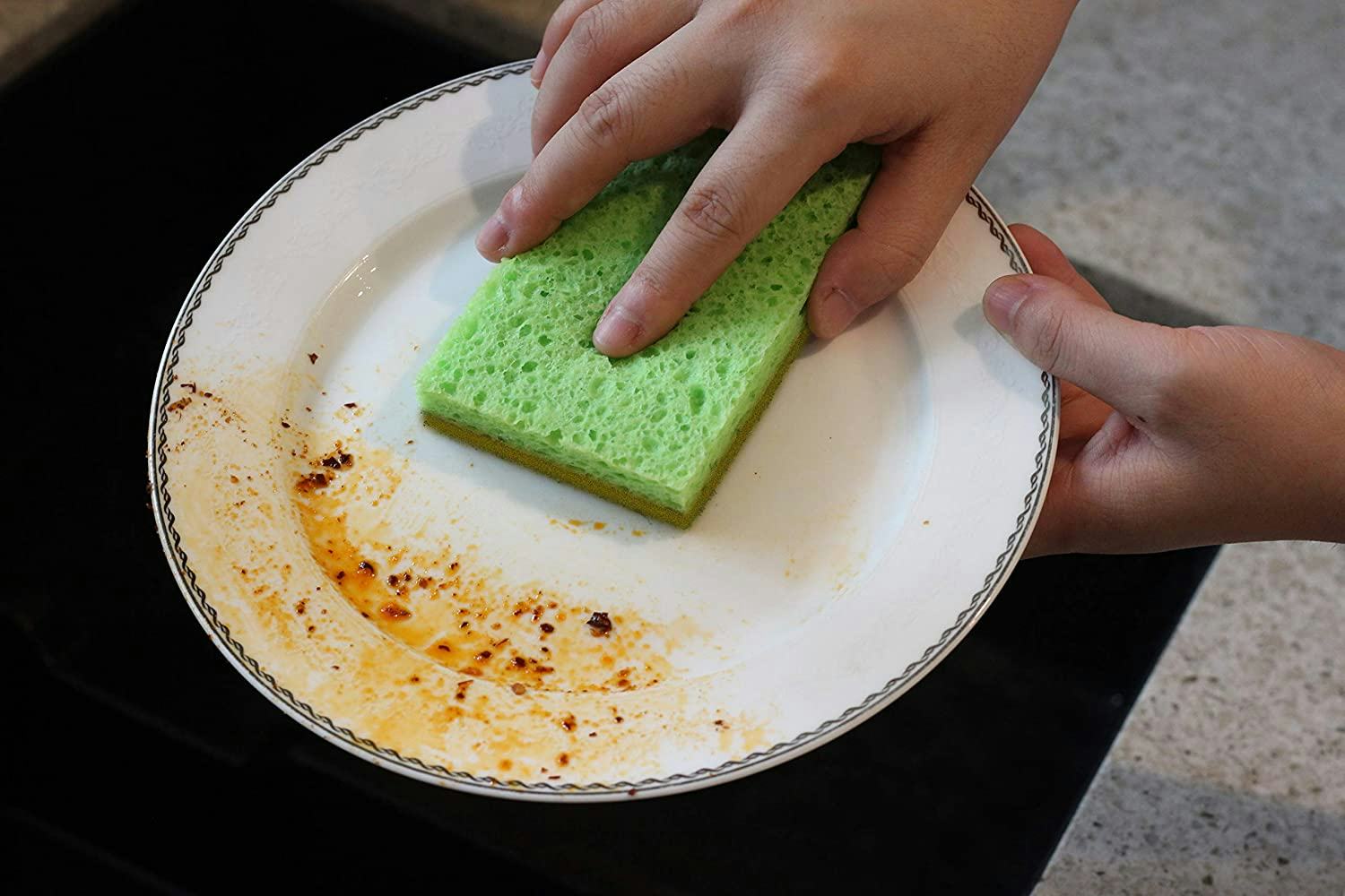 Not only are these sponges biodegradable, but each one is also made from eco-friendly recycled cellulose fibers. The aerated design helps them dry quickly, preventing them from absorbing unwanted odors. Plus, the abrasive side is tough on dirt, yet gentle enough for non-stick cookware.