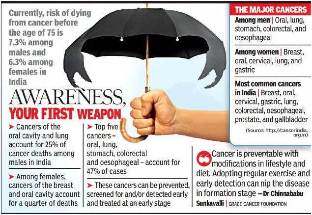 “Cancer is preventable with modifications in lifestyle and diet. Adopting regular exercise and early detection can nip the disease in formation stage,” said Dr Chinnababu Sunkavalli from Grace Cancer Foundation.