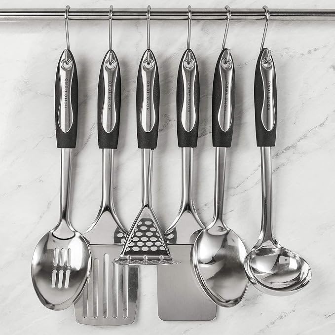 Home Hero Kitchen Utensils Set - Cooking Utensils Set with Spatula - First Home Essentials Utensil Sets - Household Essentials - Kitchen Gadgets & Kitchen Tool Gift (25 Pcs Set - Stainless Steel)