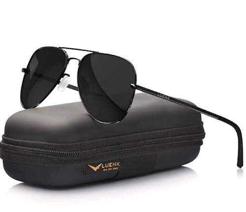 Here's a pair of stylish sunglasses that features polarized lenses to block glare during driving or outdoor activities. Not only does the aviator style mimic designer brands at a more affordable price, but the frames are plated with rust-resistant material to keep them looking fresh. Choose from 15 colors, including classic black and mirrored blue.