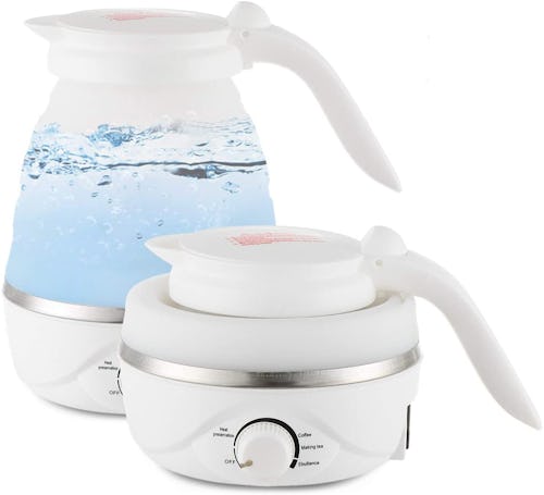 The collapsible design of this travel-friendly tea kettle means you can take it anywhere. The electric kettle boils water in five minutes or less. Boil-dry protection gives you peace of mind, especially away from home, and this pick comes in three colors: white, pink, or blue.