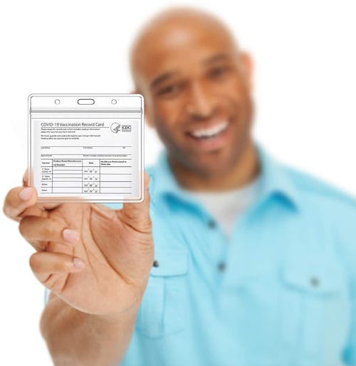 Protect this year's most important accessory — a vaccination card — with this protective sleeve. The vinyl protector is waterproof and features loops that easily attach to a lanyard or keyring. Plus, the top zips shut for added security.
