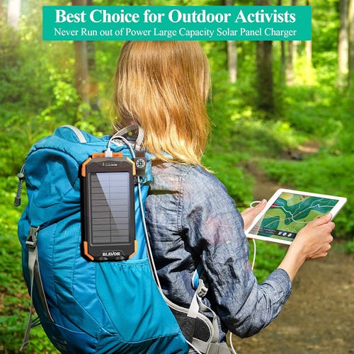 With a solar panel built into the back, this external battery works wirelessly to charge your devices while you're on the go. It also features a built-in flashlight, and each order even comes with a portable compass kit — just in case you take it with you camping or hiking.