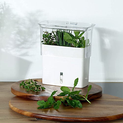 Use this fridge-friendly fresh herb keeper to extend the freshness of your herbs by up to 10 days. Made from clear acrylic, you can easily see what’s inside. A water reservoir at the bottom helps keep everything fresh, and a water level window lets you keep tabs on the right amount of moisture for your herbs.