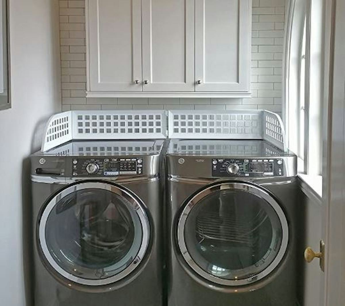If you tend to lose clothes behind your washer and dryer, this magnetic guard will put a stop it. Included are four hinged magnetic panels that you can position behind either one or both machines as needed. They’ll fit on pretty much any front-loading models. Choose from two colors in the listing.