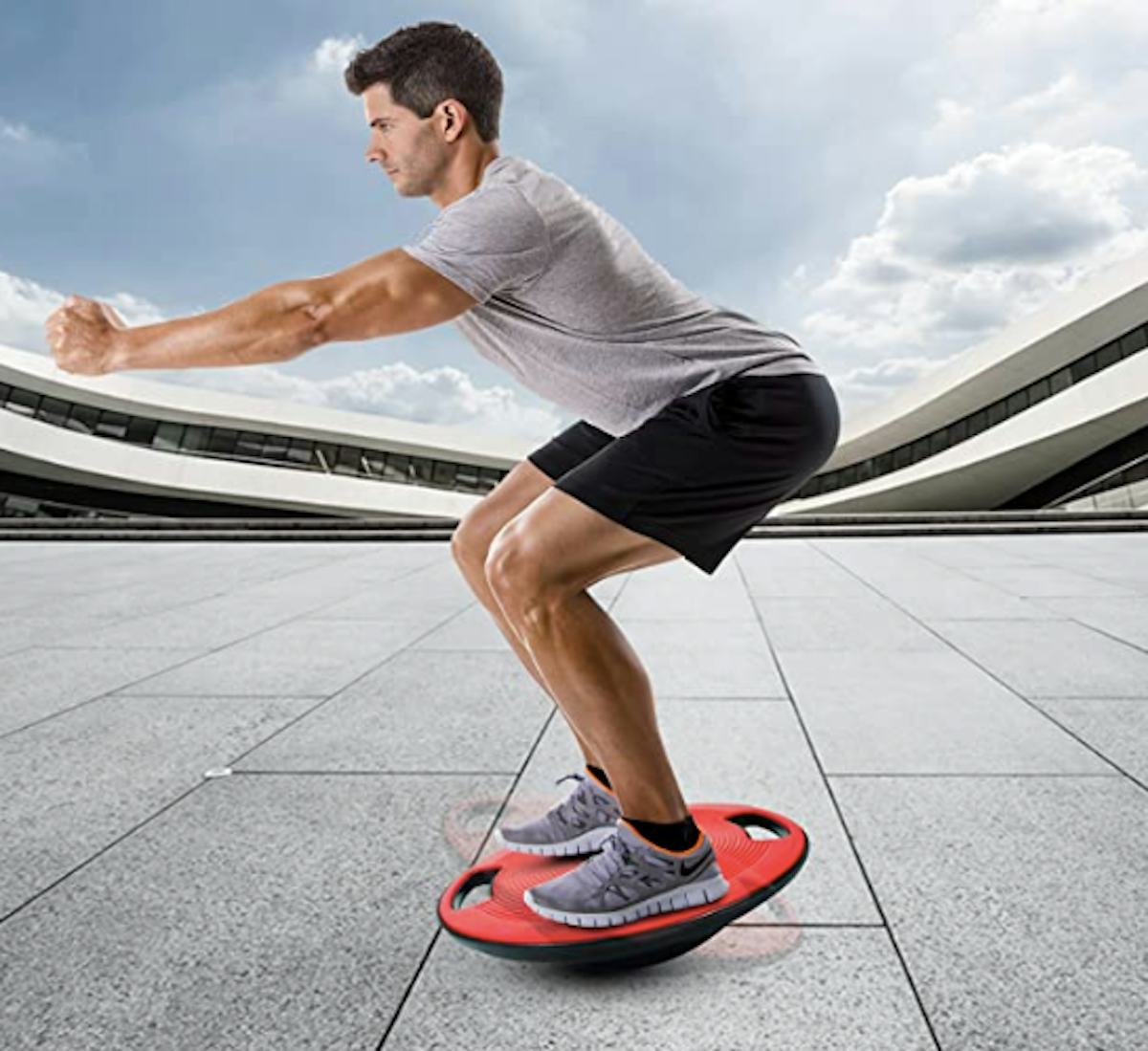 Improve your balance, coordination, and core strength with this balance board. As it wobbles, your core will readjust your balance to keep you upright and maintain your equilibrium which will give you a workout. It’s crafted from durable plastic that’s easy to clean and can support up to 300 pounds. Plus, it’s lightweight, compact, and designed with integrated handles so it’s easy to move or take on-the-go.