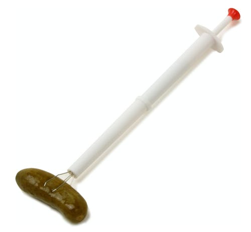 Grab pickles out of the jar without getting your fingers wet with the help of this clever pickle pincher. It clocks in at 8 inches, giving plenty of reach for jars of all sizes. Its stainless steel prongs are paired with white plastic handles, and the pinch mechanism has a simple hinge design. Pickles aside, it’s also great for banana peppers, olives, and maraschino cherries.