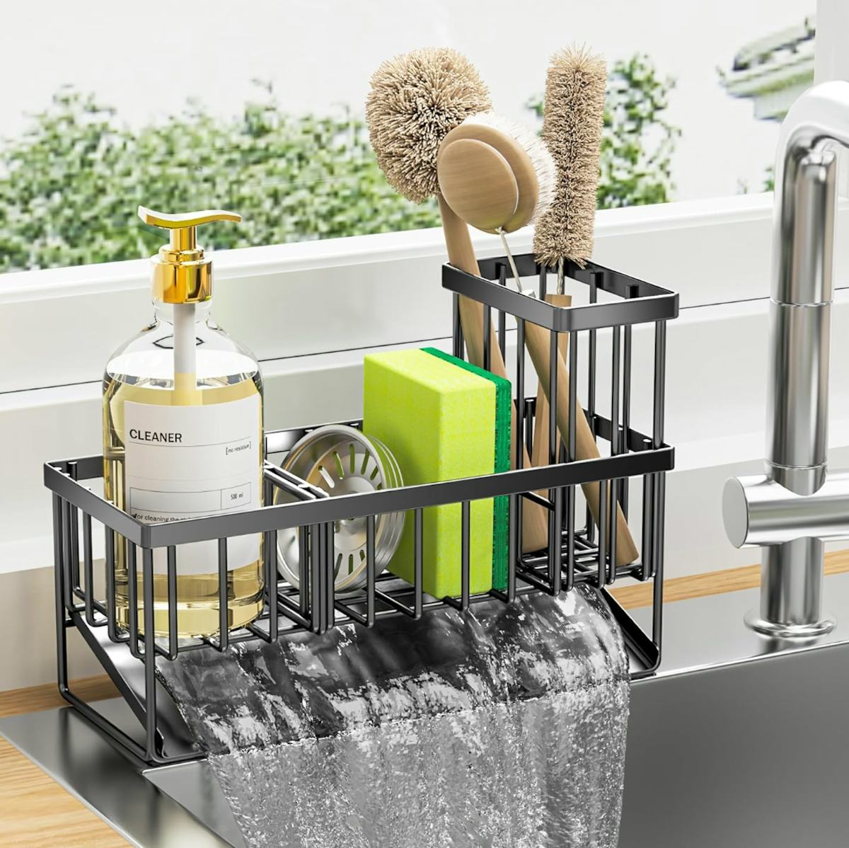 Constructed from rust-resistant stainless steel, this countertop sink organizer is designed to keep your kitchen cleaner. The divided interior creates dedicated zones for sponges, brushes, and soap, while the built-in drainage system channels excess water back into the sink. You can get it in 16 colors and two sizes.