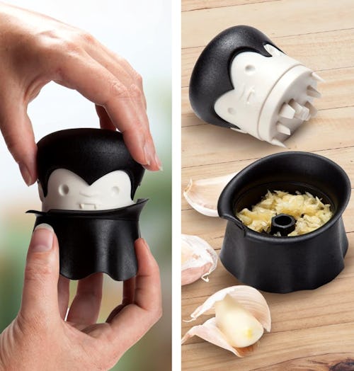 A Dracula-inspired garlic crusher that doubles as a peeler