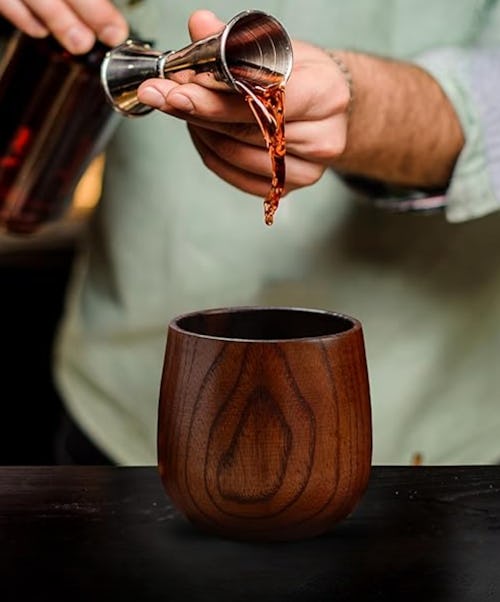 With a rich, dark charred exterior that gives it a rustic, handcrafted look, this taste-enhancing bourbon glass is a best-seller for a very good reason. The glass has unique wood grain patterns, making every piece one of a kind. Plus, its charred wooden interior enhances the bourbon aroma and taste.