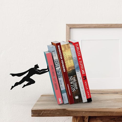Pull off the perfect optical illusion with this hidden metal bookend — a flying superhero that appears to be holding up your book collection. Made from heavy-duty metal with a hidden support structure, this clever setup gives the effect of books hovering midair. It’s equal parts clever engineering and bookshelf art.