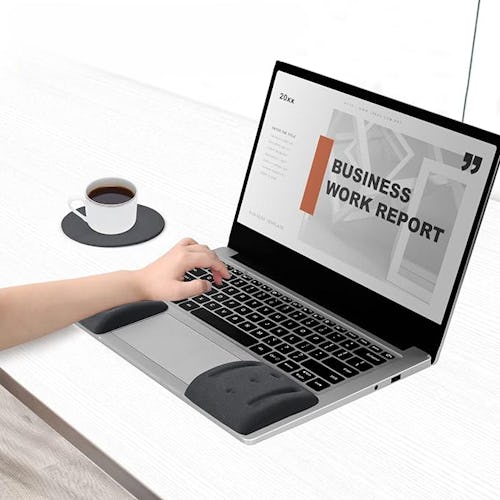 Designed for both a keyboard and a mouse, these laptop wrist rests are made with cozy memory foam wrapped in a smooth, easy-to-clean fabric. The nonslip base keeps everything in place through marathon typing sessions, and the ergonomic contoured design gives it that just-right lift. Also available in pink, each purchase comes with two.