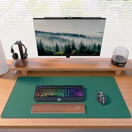 This extended desk mousepad means business with its extra-wide 31.5 by 11.8-inch surface that easily fits both a keyboard and mouse. The smooth, water-resistant surface keeps movement consistent, while the stitched edges help prevent fraying over time. The nonslip rubber base keeps it right where it should be.