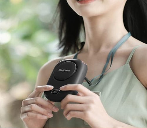 This portable neck fan is a great way to cool down while keeping your hands free. It’s USB rechargeable, offering up to 12 hours of runtime, and it has three adjustable speeds for total control. It has a wide-angle breeze, a silent motor, and it comes with a removable and adjustable lanyard.