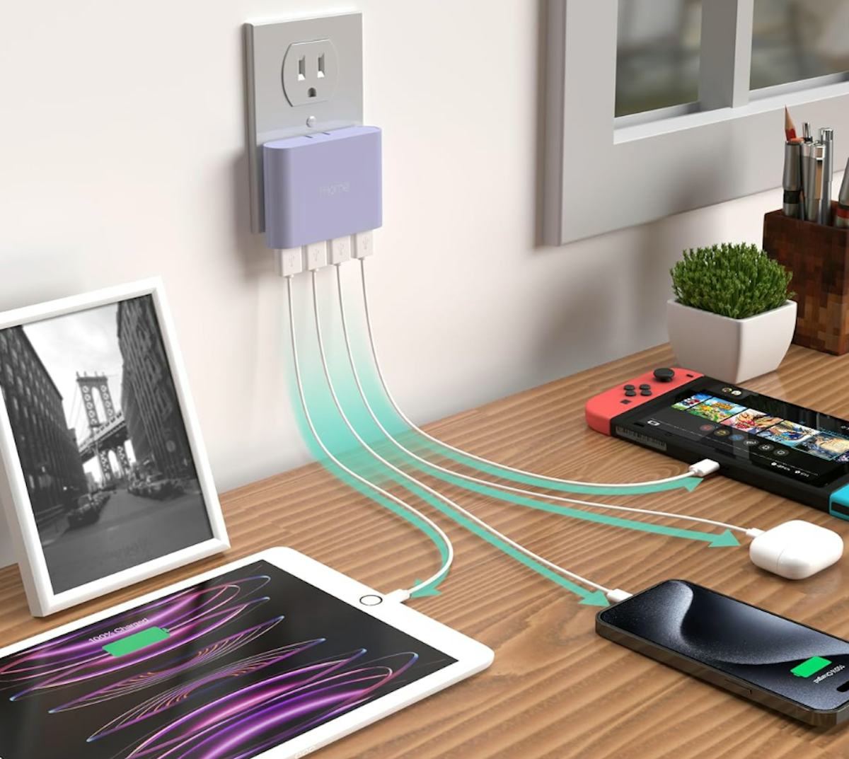 Turn an everyday outlet into an incredibly useful four-port USB port with the help of this adapter. Its slim profile means you can tuck it behind furniture and other things, and its low profile means it won’t block the other outlet. It comes in a variety of fun colors including lilac, baby blue, and coral.