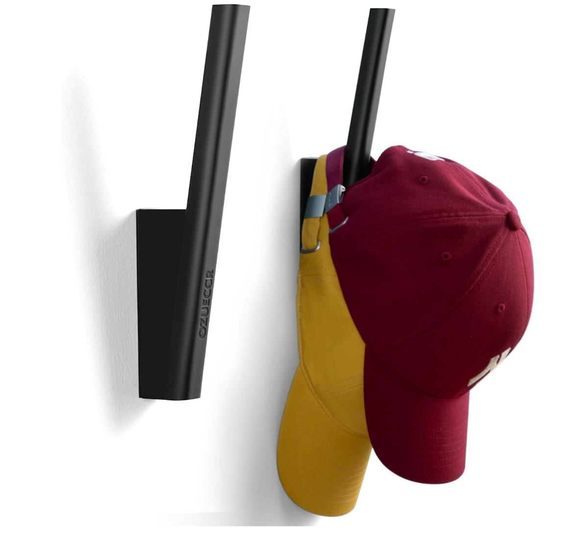 This pack of two vertical hangers can easily store your baseball hats without indenting the brim or crushing the cap. Each rack is made to hold up to 10 hats, and you can also use the hooks to store bags, scarves, and more. You can either install the rack with the included adhesive or the screws for extra security.
