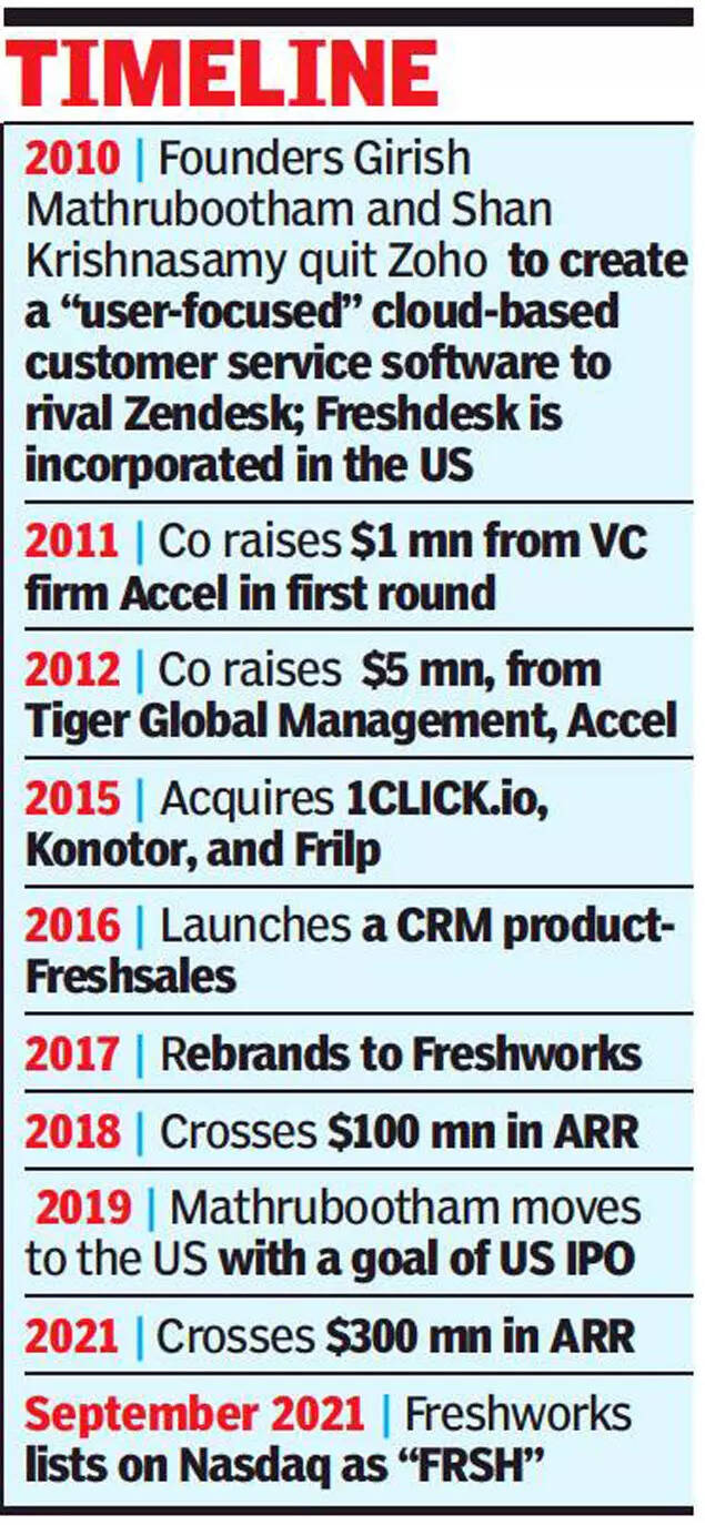 CHENNAI: Founded in Chennai and now headquartered in California, customer service software maker Freshworks got listed on the Nasdaq stock exchange on Wednesday raising more than $1billion from the public and markets valuing the company roughly at more than $10 billion. In the process, 500 of its employees have become millionaires.