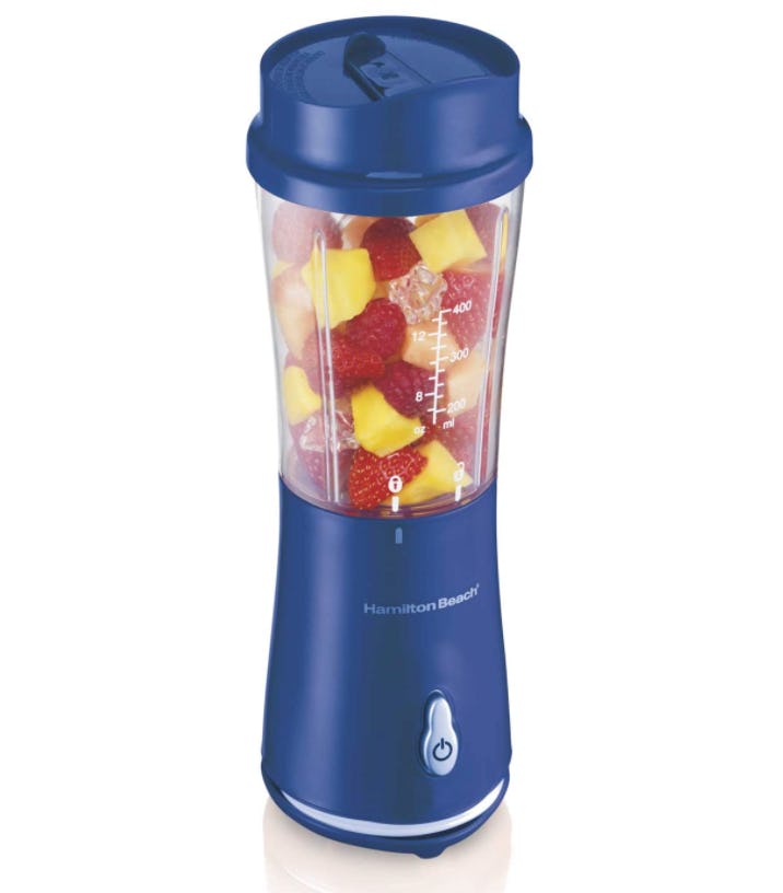 If you like to rush out the door with a smoothie for breakfast, this little blender will get used daily. Drop your ingredients in, hit the button to blend it all together, put the to-go lid on the jar, and go. There’s a sipping lid and the 14-ounce jar is just right for one smoothie.