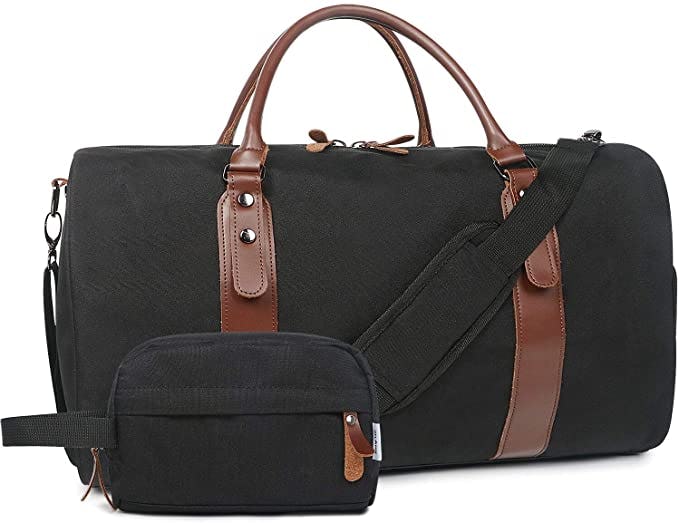 This roomy weekender is an elegant piece of luggage that is perfect for a couple of days away or as a carry-on for a longer trip. There’s a strap to hold it to the top of your rolling suitcase, it opens wide for easy access, it has three carry options and a shoe compartment, and it comes with a matching toiletry bag.